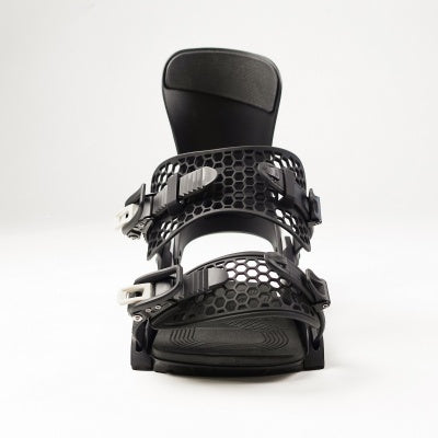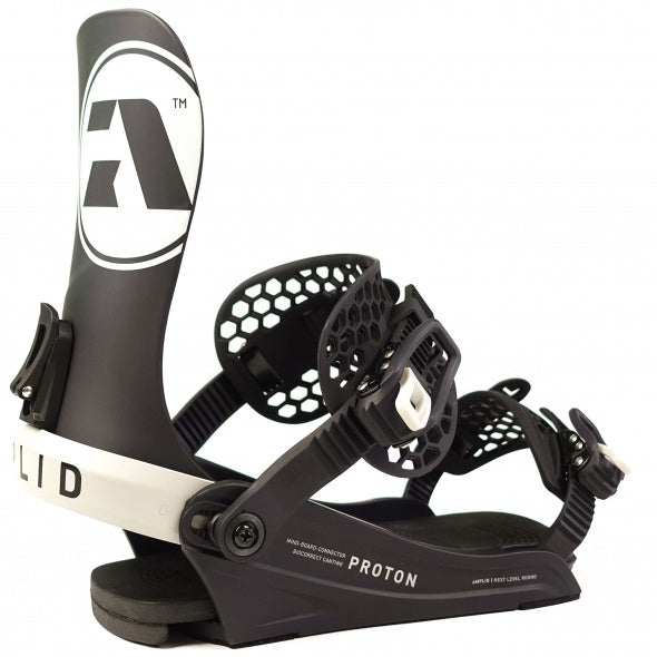 Deze binding is de nieuwe all-mountain binding van Amplid. Doordat de binding makkelijk te verstellen is, krijg je al snel een custom-fit-feeling. De EVA padding onder je voeten, geeft extra schokdemping. De base is iets gekanteld waardoor je knieën ontlast worden. De enkel straps geven onwijs veel support en response.• Baseplate: Glassfibre Injected Nylon• Cushioning: Doubledensity EVA Foam• Heelcup: Extruded 3D Aluminum• Highback: Carbonfibre Injected Nylon w/ EVA Padding• Ankle Strap: Hexo2cell SD 3• Ankle Strap Length Adjuster: Toolfree• Toe Strap: Hexo2cell SD 2• Toe Strap Length Adjuster: Toolfree• Ratchet: Magnesium 5-Teeth Speed Travel• FLAD: Tool-Less• Canting: 4°• Disc: 4x4 / Channel compatible• Weight incl. disc / per piece, size M: 780 gr.Small - 5.0 to 8.0 US | 34.0 to 38.0 EUMedium - 7.0 to 10.5 US | 38.5 to 43.5 EULarge - 11.0 to 14 US | 44 to 48