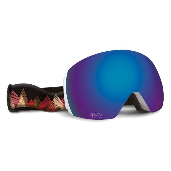 Het nieuwe model van Aphex. De STYX heeft een iets kleiner frame voor een fijne pasvorm. Uitgerust met een snel magnetisch lenswisselsysteem. Deze bril past i.c.m. 99% van de skihelmen die er op de markt zijn. De lens heeft een groot 180 graden zicht en heeft luchtopeningen om condensatie te voorkomen. De binnenlens is ook behandeld met een anticondens systeem. De bril heeft een 3-laags gezichtsschuim voor een goede pasvorm en alle Aphex-brillen worden geleverd met een gele reservelens van categorie 1.Het unieke van Aphex-brillen zijn de afneembare banden die verkrijgbaar zijn in verschillende kleuren en designs. De Aphex Styx wordt geleverd met een standaard passend bandjeLens: Revo Blue - Cat. S2 / 32%Extra lens: yellow - Cat. S1 / 54,0%