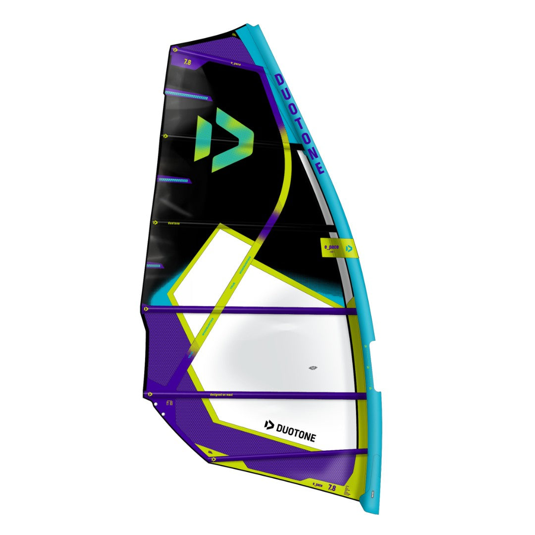 De Duotone E_PACE is hét no-cam freeride zeil voor wie houdt van snelheid, eenvoud en veelzijdigheid. Dankzij het slimme 3 IN 1 DESIGN met brede trimrange pas je het zeil moeiteloos aan op elke windconditie, van licht weer tot overpowered varen.Op de MIN-trim planeer je razendsnel bij weinig wind en voelt het zeil licht en speels aan, ook perfect voor foilen. Op de MAX-trim biedt het maximale snelheid en controle, zelfs in harde wind. Hierdoor is de E_PACE ideaal voor elk niveau en elke spot.Het zeil is eenvoudig op te tuigen, reageert direct en biedt veel vertrouwen op het water. Voor foilgebruik is er een speciale oogje voor een meer rechte stand. Verkrijgbaar in standaard uitvoering of HD-versie zonder monofilm voor extra duurzaamheid.Kortom: de E_PACE staat garant voor krachtige prestaties met minimale moeite – en maximaal plezier.FeaturesElk zeil is voorzien van visuele aanduidingen voor de juiste outhaul-instelling (vereist een VTS TAIL giek).Optionele QUICK RIGGING PATCH maakt het mogelijk om de downhaul “op gevoel” af te stellen zonder naar de top van het zeil te hoeven kijken.3 in 1 Design voor een ongeëvenaarde trimrange en een extreem breed windbereik. Individueel afgestelde latspanning vanuit de fabriekDe lichtste zeilbeschermer op de markt, met geïntegreerd downhaul-trimvenster.Ook beschikbaar in een monofilm-vrije HD-constructie voor extra duurzaamheid.Performance