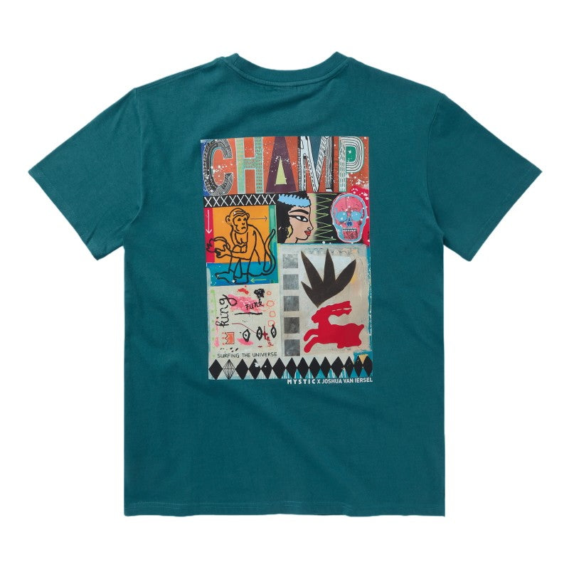 Mystic The Funk Tee – Organic stijl met Joshua van Iersel artworkDe Mystic The Funk Tee combineert comfort, stijl en creativiteit in één relaxed-fit T-shirt. Gemaakt van 100% biologisch katoen (single jersey, 180 gsm) is dit shirt superzacht, ademend en perfect voor dagelijks gebruik. De samenwerking met kunstenaar Joshua van Iersel komt tot leven in de unieke prints op de borst en rug – een echte eyecatcher voor liefhebbers van surf lifestyle en streetwear.Of je nu op weg bent naar het strand of gewoon chillt na je sessie, met dit duurzame surf T-shirt zit je altijd goed.