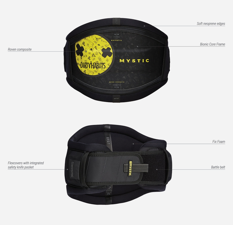 De Mystic Majestic is een hard-shell trapeze die ontworpen is met de beste technieken en de mooiste materialen. De Majestic heeft in tegenstelling tot de Majestic X geen carbon frame maar een glasvezel frame. daardoor is deze trapeze wat goedkoper. Het frame is stijf maar heeft nog steeds genoeg diagonale flex. The Majestic is een geavanceerde trapeze die optimale steun geeft maar nog steeds je lichaam volgt.Deze trapeze werkt erg goed bij zowel kitesurfers als windsurfers. Alleen de trapeze haak bepaalt voor welke discipline het geschikt is.Deze trapeze haken passen perfect bij deze trapeze: Mystic Stealth Bar Freeride Mystic Stealth Bar Kite Mystic Stealth Bar Surf Mystic Stealth Bar Windsurf Mystic Bananabar 2.0 Kite Mystic Bananabar 2.0 Windsurf FEATURES- Bionic Core Frame- Fix Foam- Soft neoprene edges- Flexcovers- HP system with reinforced guidance holes- Key pocket 2.0: keyloop with mini-buckleFABRICS- Knitflex