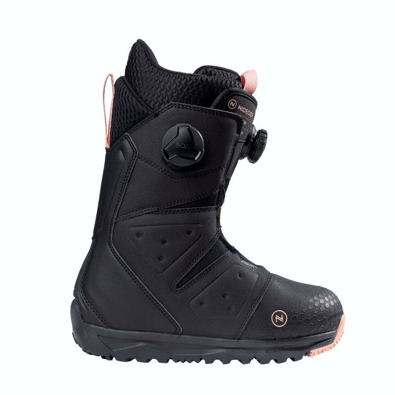 De perfecte schoen voor iedereen die opzoek is naar premium features in een snowboard schoen. Deze schoen van Nidecker gaat onwijs goed samen met bindingen van Nidecker of Flow, door deze schoenen te combineren met deze bindingen voorkom je vervelende drukpunten tijdens het snowboarden. Deze schoen maakt gebruik van het Dual BOA systeem. Je stelt je "veters" af door simpel aan een knop te draaien. Je kan de veters van het onderste en bovenste deel apart stellen. De knop is onwijs handig in gebruik waardoor je de schoen kan stellen met je wanten aan! Een schoen die ideaal is om te carven op de piste of met precisie tussen de bomen door te manoeuvreren.