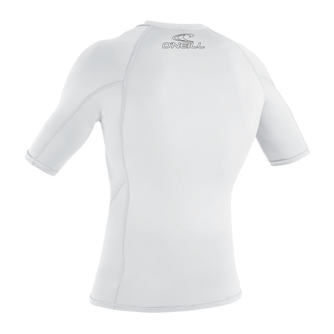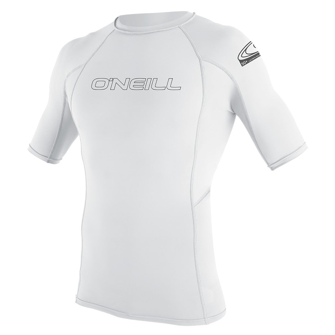 De O'neill Youth Basic Skins Rash Guard White is een slim-fit lycra shirtje voor kinderen.