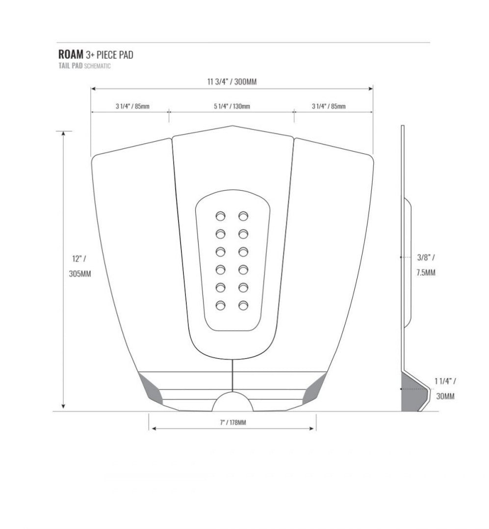 De Roam 3 Piece+ Tail pad is een high performance tailpad voor je surfboard met met een hoge 30mm tail kick en een 7,5mm arch. Deze pad heeft het meeste grip en is gemaakt voor shortboards en betere surfers in hogere golven. • 3 Piece Design• 5mm Arch• 25mm Kick Tail• Diamond Groove• 3M GlueDesigned for most board shapes.