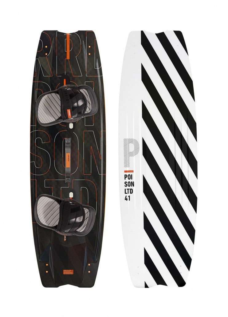 De Poison is een geweldig freestyle board met een geweldige pop. Dankzij de channels op de onderkant van het board zal de Poison onwijs smooth carven.De outline en rocker zijn ontworpen om zoveel mogelijk pop te creëren en snelheid te genereren. De smalle tips zorgen er voor dat je zo stabiel mogelijk door de chop kan snijden, hierdoor heb je onwijs veel controle in ruige condities.Features:Gemaakt in Europa.Anti-torsion box tip design.Unidirectional carbon stringers.Diepe channels aan de onderkant in het midden van de outline.5mm ABS sidewalls.Met carbon verstevigde ABS track channels voor de pads.LTD:Deze constructie is 20% lichter dan de klassieke constructie. LTD is dunner en reageert sneller. Dit zorgt voor meer pop en meer performance. Deze constructie is voor de sportievere kiter die wel fan is van een sessie vol energie en dynamiek.Prijs is exclusief pads!