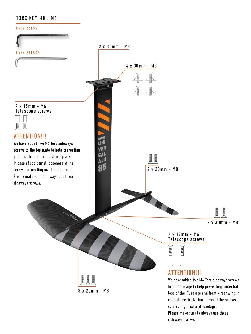 RRD Universal Alu Foil Set Y27 De Universal Alu is uitgevoerd met een carbon front en back wing.Daardoor geeft deze foil een optimale en stabiele lift.De foil is voor wingers die willen starten en willen door groeien in de sport.De foil is in de volgende sets te verkrijgen.Met een 1750 voor wing en een 75cmMet een 1750 voor wing en een 85cmMet een 2400 voor wing en een 75cmMet een 2400 voor wing en een 85cm