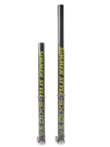 De Simmer Style SX10 RDM Extension heeft een pre-preg carbon buis, met een extra dikke wand van 3.8mm om zo lang mogelijk mee te gaan, het voorkomt buigen en breken. Door roestvast staal te gebruiken bij het cleat/pulley systeem heeft deze verlenger de beste gewicht en stijfheid ratio, daarnaast is het daardoor extra duurzaak en kan het tegen grote krachten. Gemaakt voor de beste performance en om lang mee te gaan.Features- Quick-lock release. - Stainless pulley system for less friction and greater durability.- Stainless clamshell adjustment system.- Dynema rope for reduced friction and increased longevity.