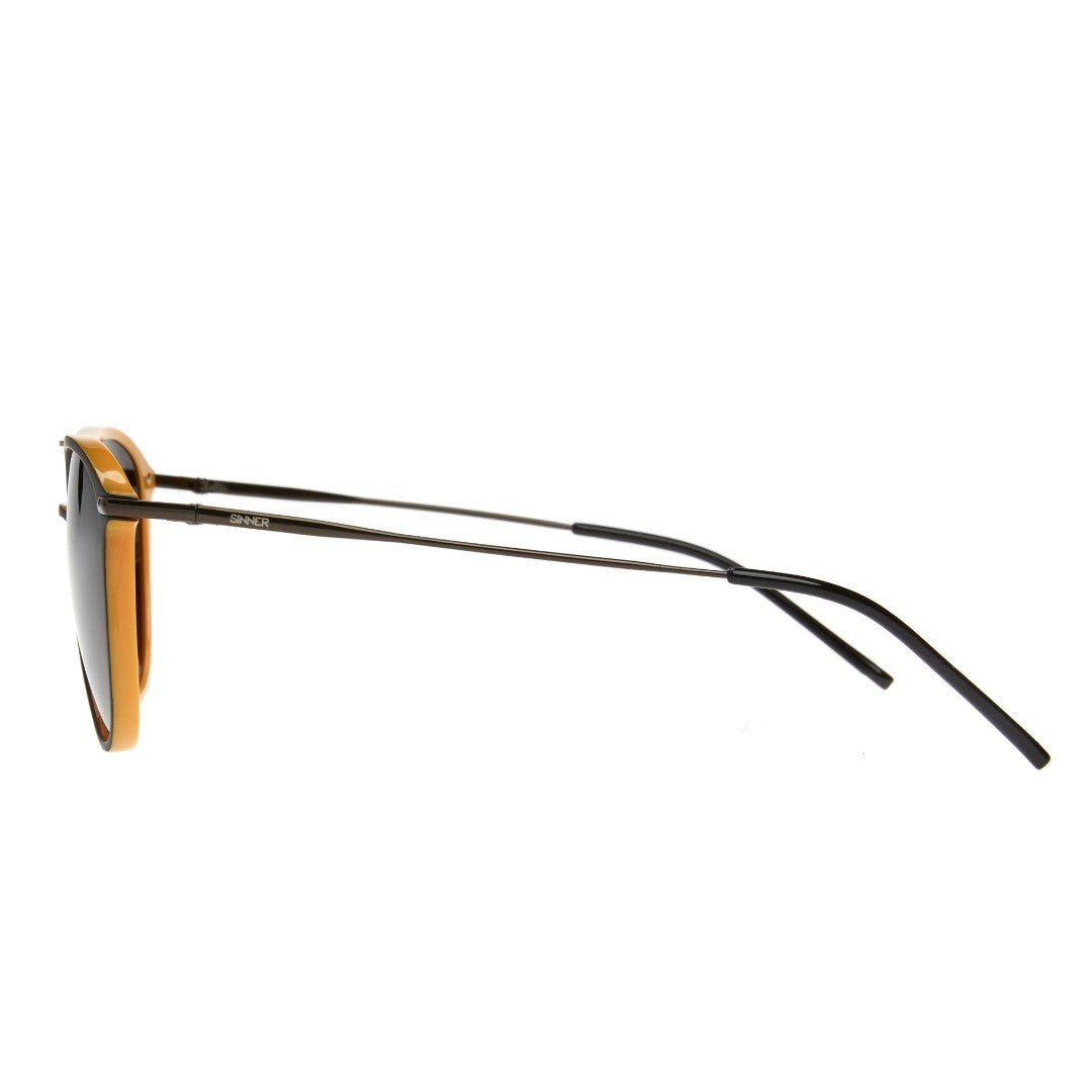 De SINNER CARMEL zonnebril is een perfecte mix van stijl en flair! Het montuur in twee trendy kleuren Ð donkerbruin aan debuitenkant en oranje aan de binnenkant Ð krijgt een extra touch door de dubbele neusbrug. De metalen brilpootjes makende look helemaal af. De lenzen hebben een mooi verloop van donker bovenaan naar lichter onderaan en zijn gemaakt vanstevig polycarbonaat. Ze bieden niet alleen 100% UV-bescherming, maar ook een superchique uitstraling.De CARMEL is de ideale zonnebril voor wie van een fashion-forward look houdt!KenmerkenPolycarbonaat lenzen100% UV-bescherming2 kleuren montuur & metalen brilpootjesCat.3 donkergrijs