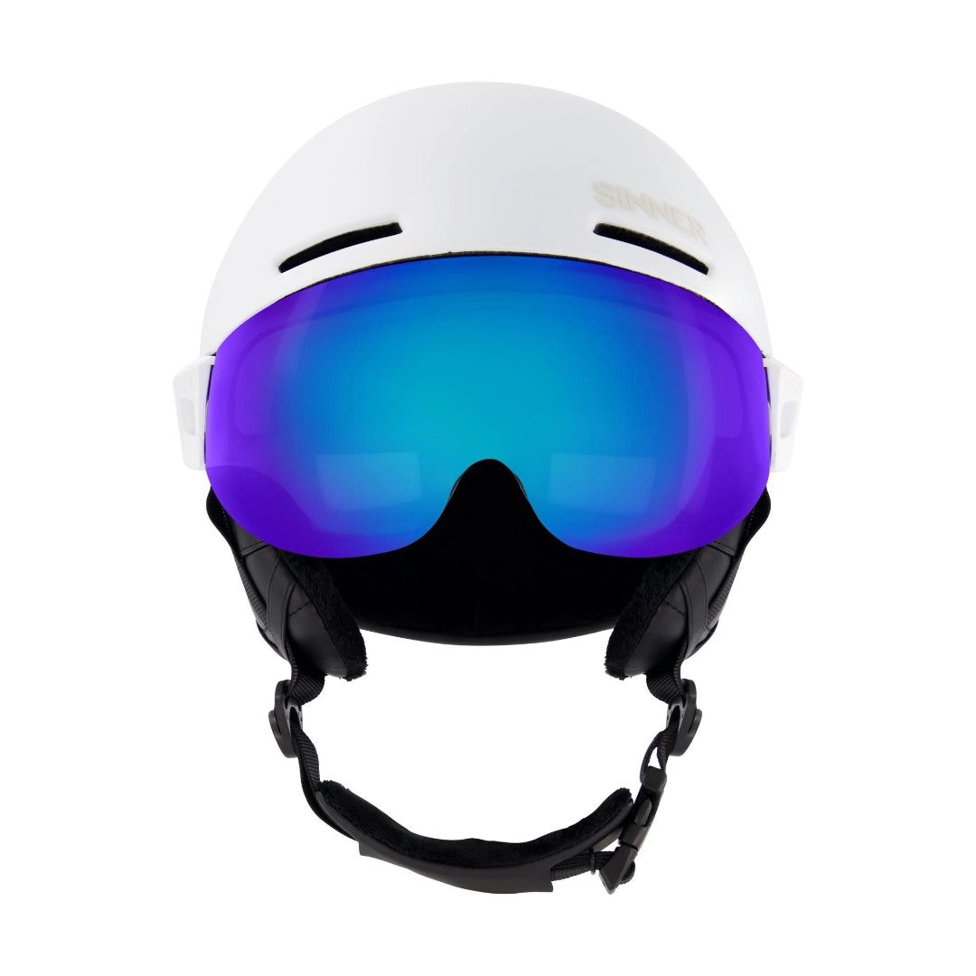 De SINNER MONTBLANC VISOR skihelm biedt ultieme bescherming en stijl. Het blauwe spiegelvizier (categorie 2) is perfect voor brildragers en zorgt voor een helder zicht. Dankzij de lichtgewicht In-Mould technologie ben je veilig zonder extra gewicht. De hypoallergene, uitneembare en wasbare polyester voering biedt comfort, terwijl ventilatieopeningen en het verstelbare maatsysteem zorgen voor een perfecte pasvorm. Met snelle sluiting en skibrilhouder is deze helm zowel praktisch als veilig. Verkrijgbaar in M en L.Specificaties:Freeride helmVizier: rode spiegellens in categorie 2Geschikt voor het dragen over een brilLichtgewicht In-Mould technologieZachte polyester stof voeringVerwijderbare voeringHypoallergeenSnelsluitingMaximale bescherming en comfortVentilatieMaat aanpassingssysteemVerkrijgbare maten: M-L