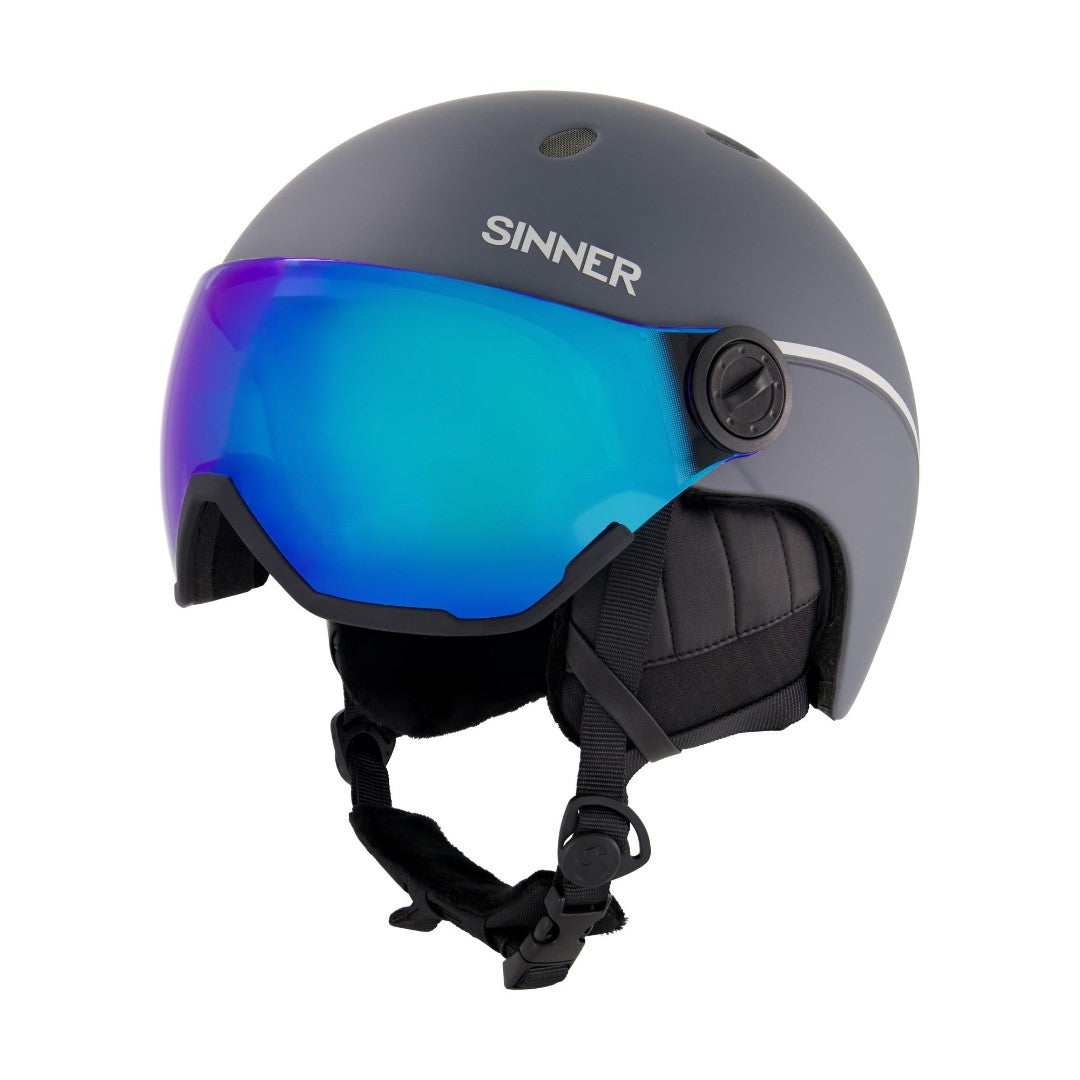 De Sinner Titan Visor ski/snowboard helm is een lichtgewicht freeride helm met In-Mold technologie, voorzien van een maataanpassingssysteem voor een ultieme pasvorm. De helm is voorzien van een categorie 2 gekleurde spiegellens met 100% UV-bescherming, anti-fog behandeling en zacht gezichtsschuim. Deze vizierhelm is perfect als je een bril op sterkte draagt. De zachte fleecevoering in de helm is uitneembaar en wasbaar, wat erg prettig is na een intensieve dag op de piste. Verwijder de rubberen hoesjes in de voering om de ventilatie te openen voor een optimale luchtcirculatie.Specificaties:Freeride helmGekleurd spiegelvizier in Cat. 2Lichte In-Mold-technologieSpeciale zachte fleecevoeringGesp met snelsluiting/-openingGeventileerde schaalGeschikt om een bril op sterkte onder te dragenMaataanpassingssysteem