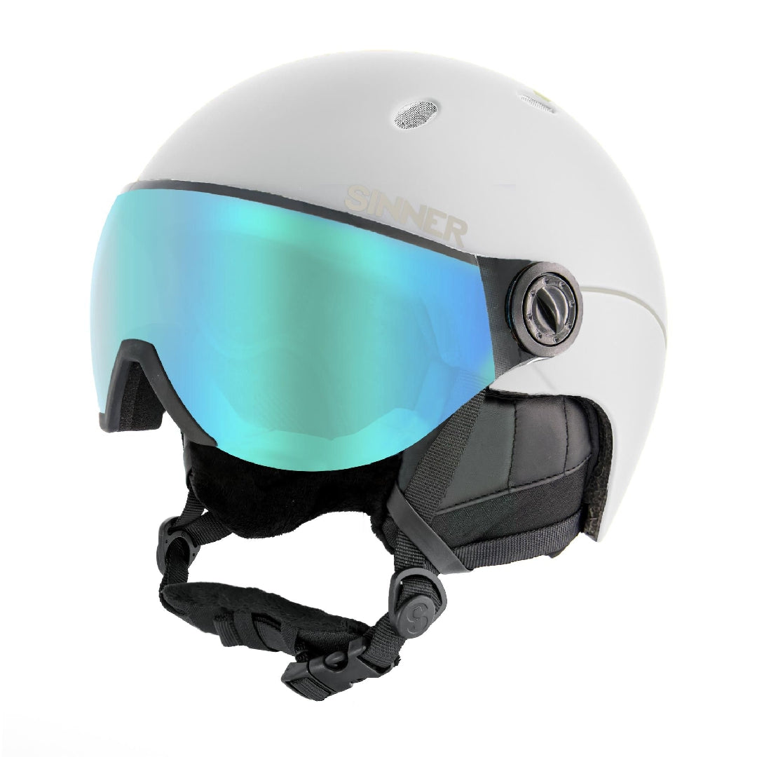 De Sinner Titan Visor ski/snowboard helm is een lichtgewicht freeride helm met In-Mold technologie, voorzien van een maataanpassingssysteem voor een ultieme pasvorm. De helm is voorzien van een categorie 2 gekleurde spiegellens met 100% UV-bescherming, anti-fog behandeling en zacht gezichtsschuim. Deze vizierhelm is perfect als je een bril op sterkte draagt. De zachte fleece voering in de helm is uitneembaar en wasbaar, wat erg prettig is na een intensieve dag op de piste. Verwijder de rubberen hoesjes in de voering om de ventilatie te openen voor een optimale luchtcirculatie. Specificaties: Freeride helm Gekleurd spiegelvizier in Cat. 2Lichte In-Mold-technologieSpeciale zachte fleecevoering Gesp met snelsluiting/-openingGeventileerde schaal Geschikt om een bril op sterkte onder te dragen Maat aanpassingssysteem