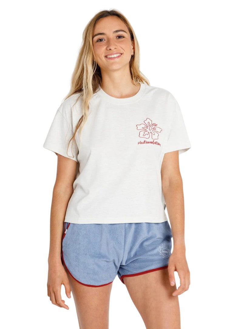 Hibiscus Tee – Licht, luchtig en met een zomerse knipoogDe Hibiscus Tee is gemaakt van een duurzame mix van katoen en hennep, en voelt licht en ademend aan. De relaxed fit en zachte stof maken ’m perfect voor warme dagen aan het strand of onderweg.Met subtiele hibiscus embroidery op de borst en een grote backprint met Hawaiiaanse vibes is dit T-shirt een echte zomerfavoriet.
