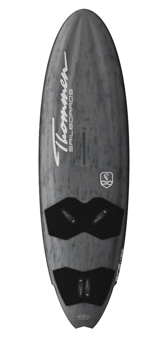 Jarenlang maakte thommen alleen custom boards, Peter Thommen en Mark Thoms ontwikkelde een board dat bij veel windsurfers goed in de smaak viel. Om meer mensen van dit geweldige board te laten genieten namen ze het board mee naar een fabrikant in Thailand, Cobra. Daar kunnen de boards op de best mogelijke manier worden geproduceerd om op die manier veel mensen te laten genieten van de de magie van de RIDE.RIDE 125 (aka 4WD) - THE UNIVERSAL WINDSURFER.Back to the future, een board dat alle condities aan kan. Net als met de GLIDE is peter terug gegaan naar de verlengde rocker lijn met een vee-to-quad-to-tri-concave om snel aan t planeren, daarnaast heeft het board een kleine tail kick, dunnere rails en cut outs om het board ook met meer wind makkelijk te controleren. Afhankelijk van het volume is het optrekken van grote zeilen geen probleem, maar ook met kleinere zeilen blijft de RIDE ontzettend goed controleerbaar. komt standaard met een 30cm powerbox vin achter en 12cm slotbox vinnen aan de zijkant, dankzij de thruster set up is het board ook zeer geschikt voor ondiep water. Het board komt inclusief boardbag om zo plastiek te besparen met het verschepen.LTD- limited- Cobra's speciaal gemaakt constructie. Lichtgewicht en extra stijf.RIDE VOLUME LENGTH WIDTH 125 255 72.5 * = Sorry no can Deal!, our T1 board come super complete with 3 fins, footstraps & boardbag - more than any brands offer at this price level!Verzendmogelijkheden en kosten op aanvraag!